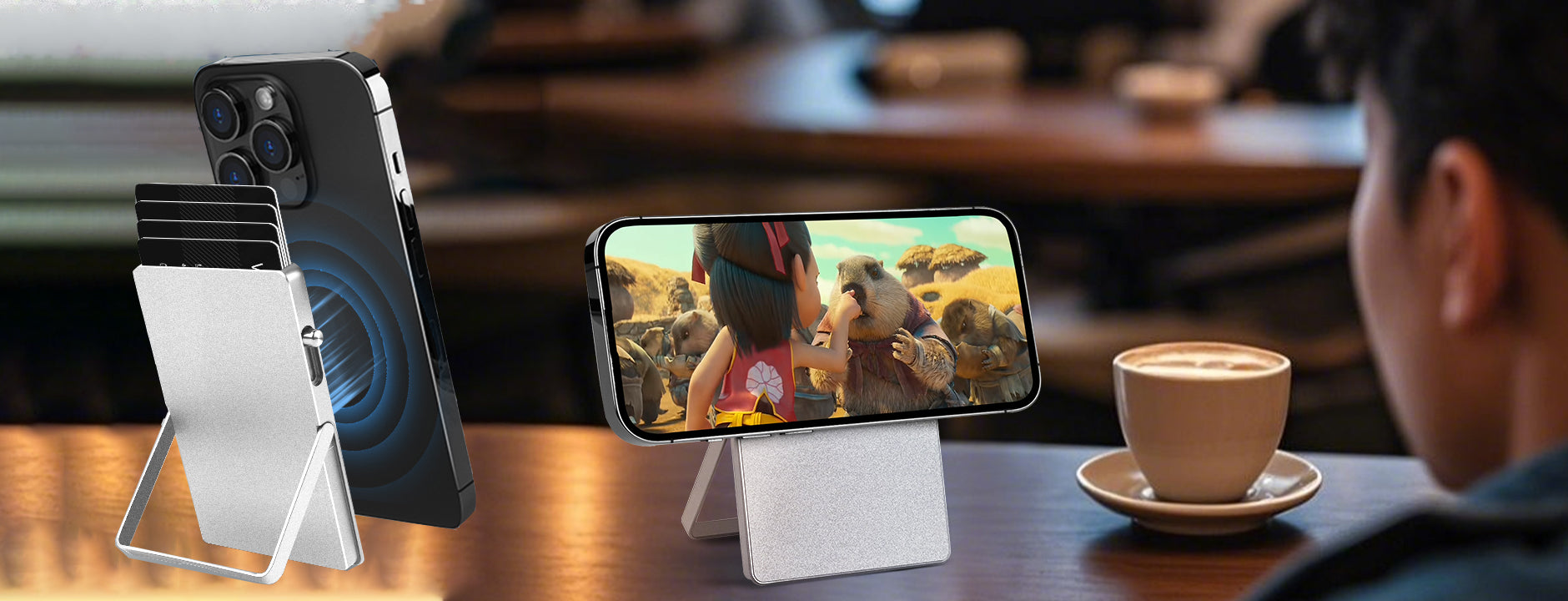 RFID Blocking Wallet Minimalist Slim Card Holder for Magsafe with Adjustable Stand, Metal Pop Up Magnetic Wallet for Men TOYFID
